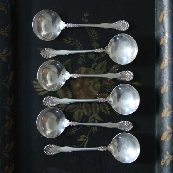 Unique style. I love mixing in vintage silverware when entertaining. I fell in love with the beautiful round bowl of each spoon in this set of six. I had never come upon that pure of a form before! Perfect for coffee, tea, ice cream…