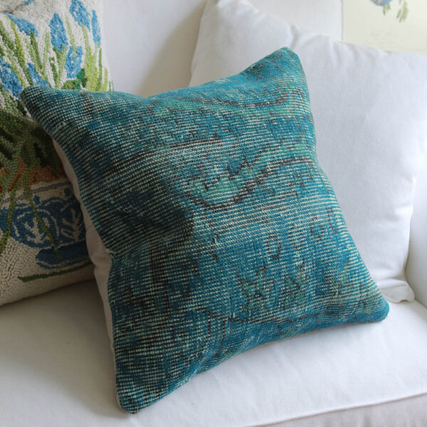 Truly one of a kind. The richness in color and pattern of this antique Turkish rug pillow stopped me in my tracks when on the hunt in South Carolina! This pillow is cut from a hand woven vintage kilim rug that was sourced from a village in Turkey. We’ve added a plump feather down filler to complete the look.