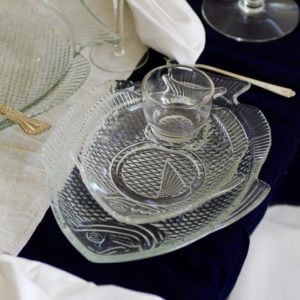 Nautical elegance. This platter makes me smile! I love the variety of sailing vessels sailing around the perimeter of this lightly scalloped edge platter. The graphic black silhouettes against the cream ground is quite striking.