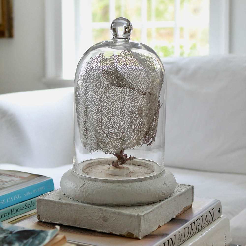 Cabinet of Curiosities White Sea Fan, Cloche & Base
