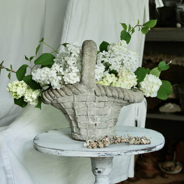 Garden notes. I love adding garden items to my home. This petite cast stone/concrete basket is perfect for small flowering plants. Or add a plastic or glass vessel and show off with freshly cut flowers (as I have in the photo). Either way, this form is a true classic.