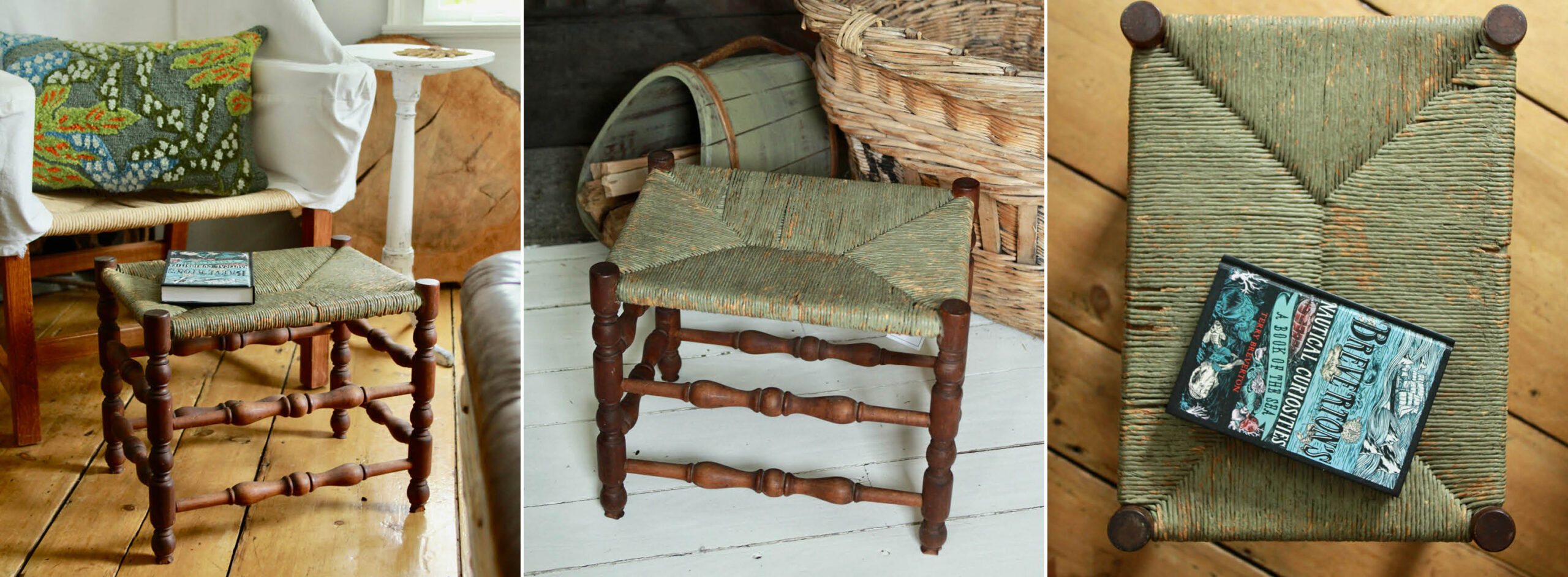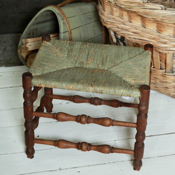 Put your feet up! The classic elements of this charming footstool make it a versatile piece. Beautifully turned wood legs and a rush top that’s been painted a soft green make it quite unique. Perfect to pull up to a comfy chair, an extra pull up seat, or a great side table!