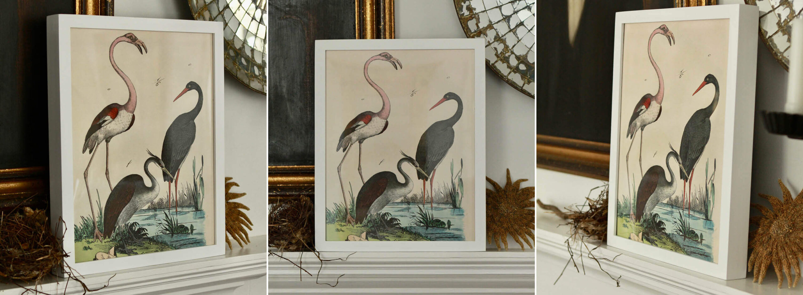 Create a grouping for impact! So many have commented and loved my wall grouping of antique Martinet prints at the top of my stairs in my country house. My wall grouping has taken me years to collect and assemble. So I found an easier way to “get the look” by using John Derian’s prints and housing them in the same kind of frames as my Martinet collection is in! All the prints that are selected for Hunt Club look absolutely fantastic together!
