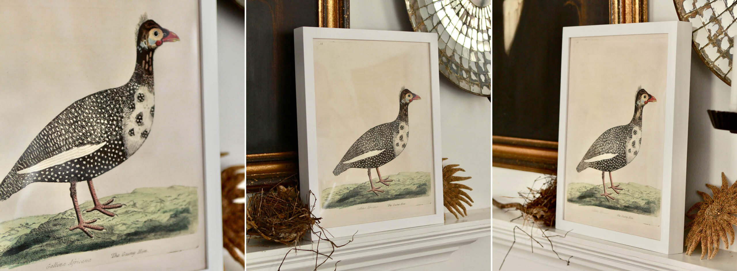 Create a grouping for impact! Create a grouping! So many have commented and loved my wall grouping of antique Martinet prints at the top of my stairs in my country house. My wall grouping has taken me years to collect and assemble. So I found an easier way to “get the look” by using John Derian’s prints and housing them in the same kind of frames as my Martinet collection is in! All the prints that are selected for Hunt Club look absolutely fantastic together!