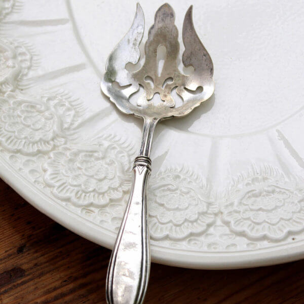 Mix old & new. We always keep an eye out for really pretty vintage serving utensils. Pairing it with a more modern platter creates interest. I love mixing old and new…it makes all the difference! This beauty has a most lovely Lyre shaped bowl with charming cut outs and wonderfully textured handle. Don’t wait for the holidays to use this serving piece…enjoy it whenever you need to serve!