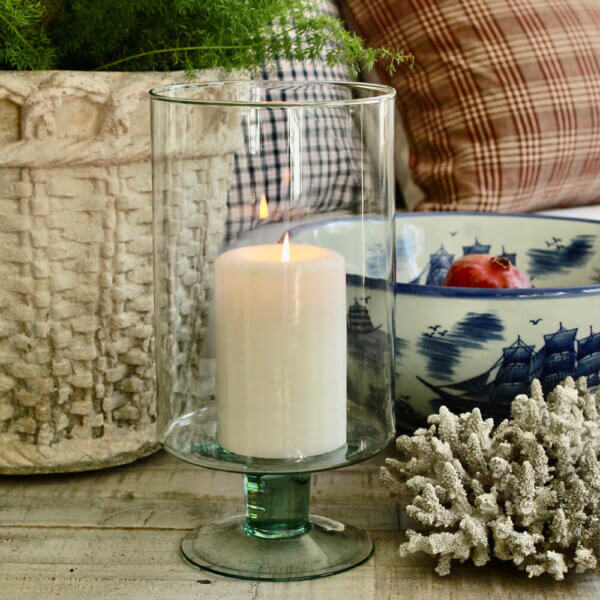 A classic. Pure in style, this hand blown glass hurricane has a soft green hue and is one of those versatile pieces that can be used as a hurricane, and at another time as a clean lined vase to showcase a beautiful bunch of flowers.
