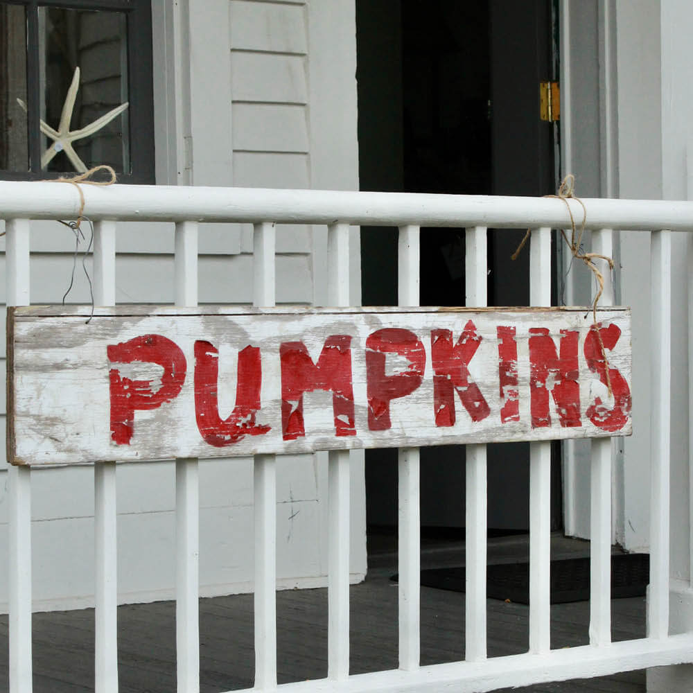 A sign of fall. A classic old farm stand sign can add interest and weight to a wall. This handmade piece makes for a great year round look!