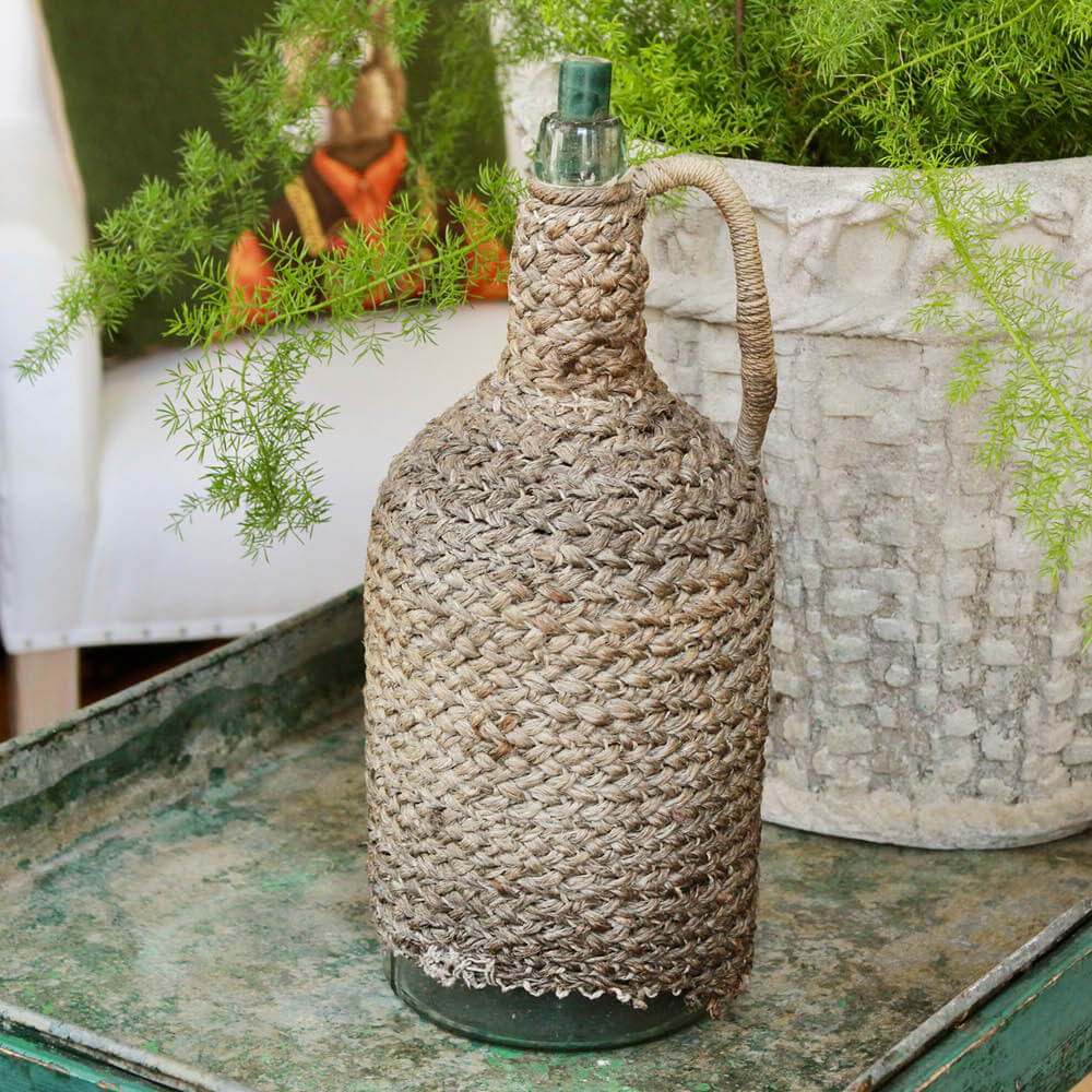 Just so good. The honest form of this bottle wrapped in a tightly woven casing along with a hand braided handle is so rich in texture and attitude. The patina and wear add so much to it.