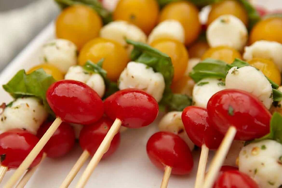 Choose a pattern/combination of ingredients to your liking and organize them for easy assembly. For a great presentation, it’s key to be consistent with the ingredient order. Each skewer should look the same.